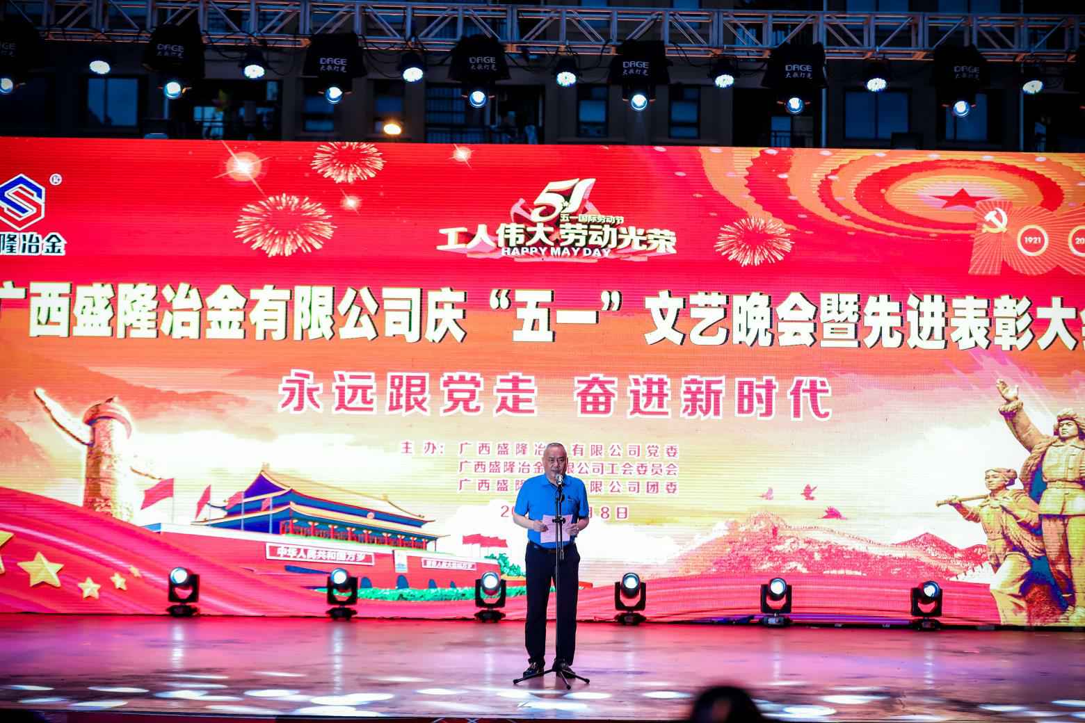 5月8日晚,开云网页版·官方站在线-开云(中国)盛隆佳园文化广场歌声嘹亮,掌声如潮。由开云网页版·官方站在线-开云(中国)党委、工会委员会、团委联合主办的“永远跟党走,奋进新时代——庆‘五一’文艺晚会暨先进表彰大会”在这里隆重举行。公司常务副总经理陈亮出席晚会并致辞,副总经理兼安环总监吕华民、副总经理兼技术中心主任刘光穆、总工程师兼规划发展部经理梁新亮、总经理助理兼广西广盛高强耐磨新材料有限公司总经理王文凯、党委常务副书记游元喜、工会主席兼总经理办公室主任刘明奇及各厂部主要领导出席。